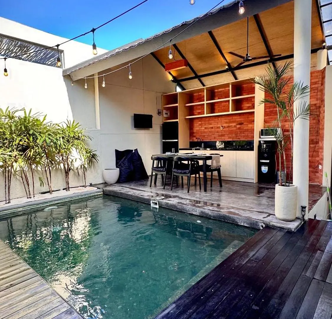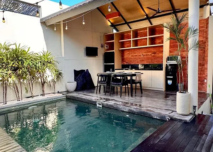 Die Unterkunft ist mit einer Mikrowelle, einem Kühlschrank und Küchenutensilien für die Selbstversorgung in eine Essecke ausgestattet. Im Restaurant Just Warung, das einen 15-minütigen Spaziergang von der Unterkunft entfernt ist, können die Gäste indonesische Gerichte genießen. Von der Villa sind es 24 Minuten mit dem Auto zum Flughafen Ngurah Rai.